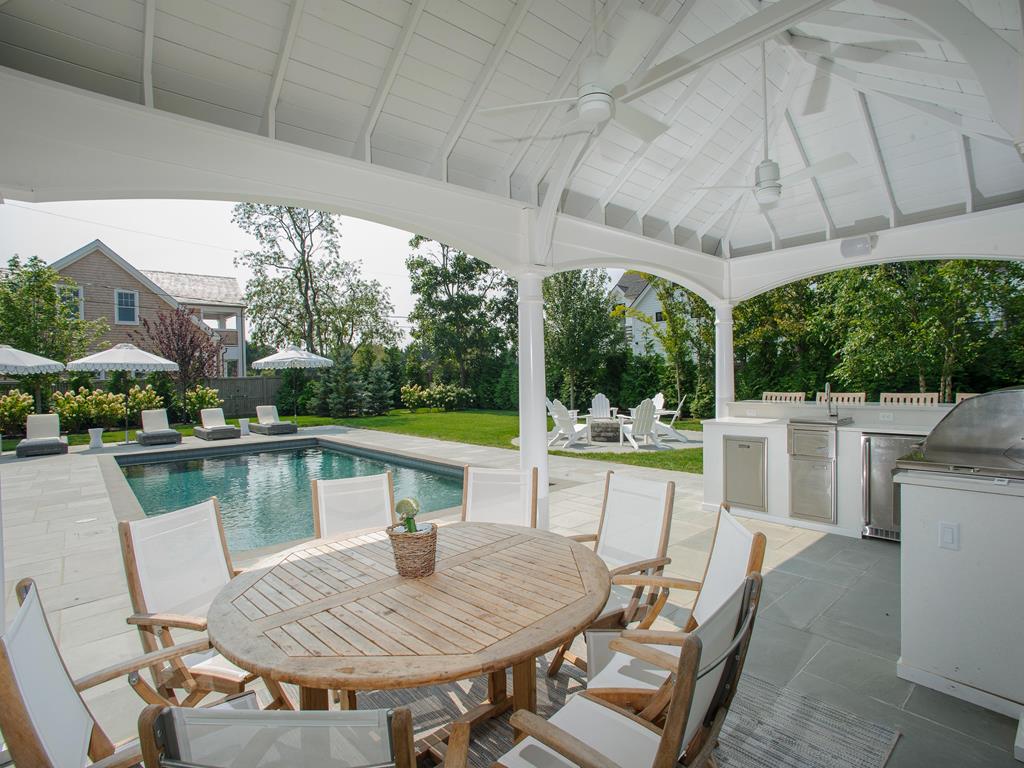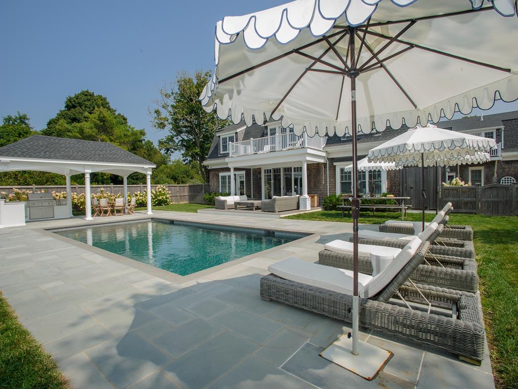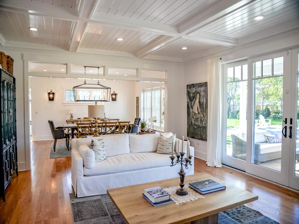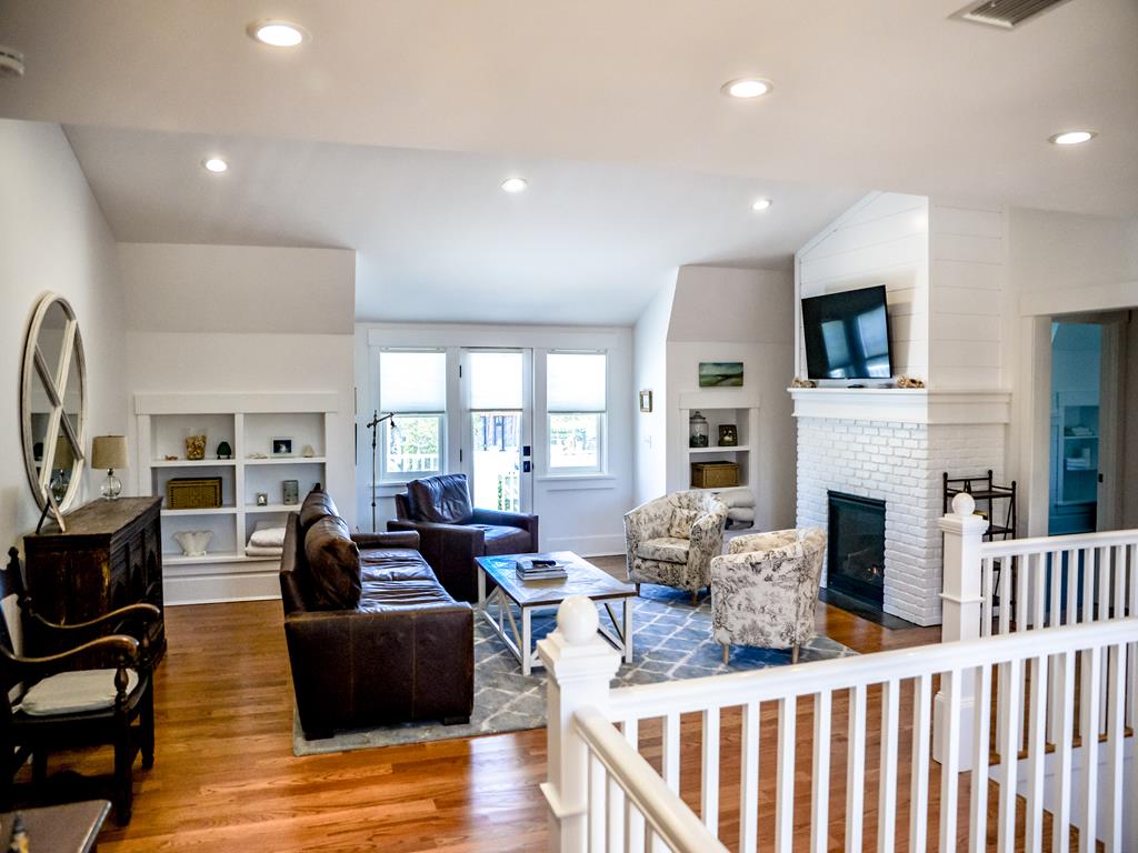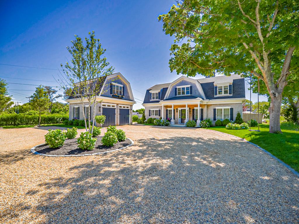 This newly constructed Gambrel style home in the heart of Katama features an open layout for easy entertaining. A large foyer entrance leads to a spacious living room with sofa seating, a media center, and gas fireplace. The gourmet kitchen boasts top of the line stainless steel appliances and counter seating. The dining room is nearby with a large farmhouse table that can accommodate up to 10, perfect for family gatherings!