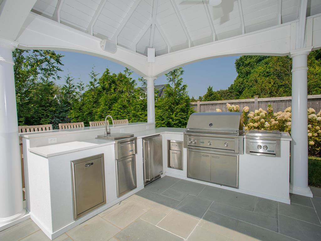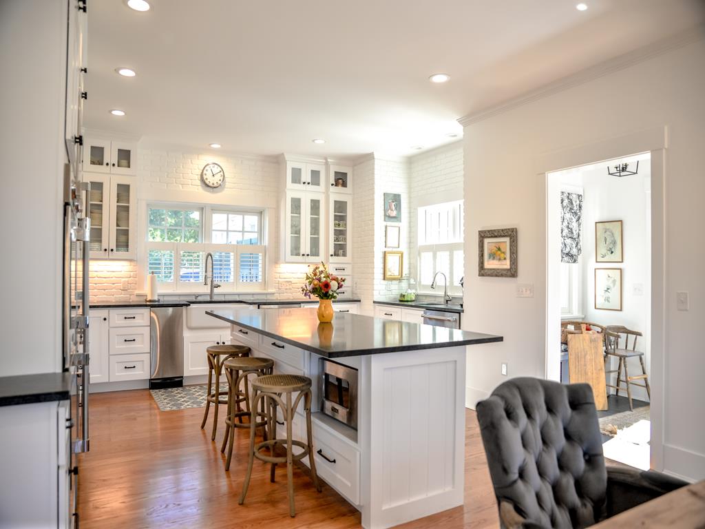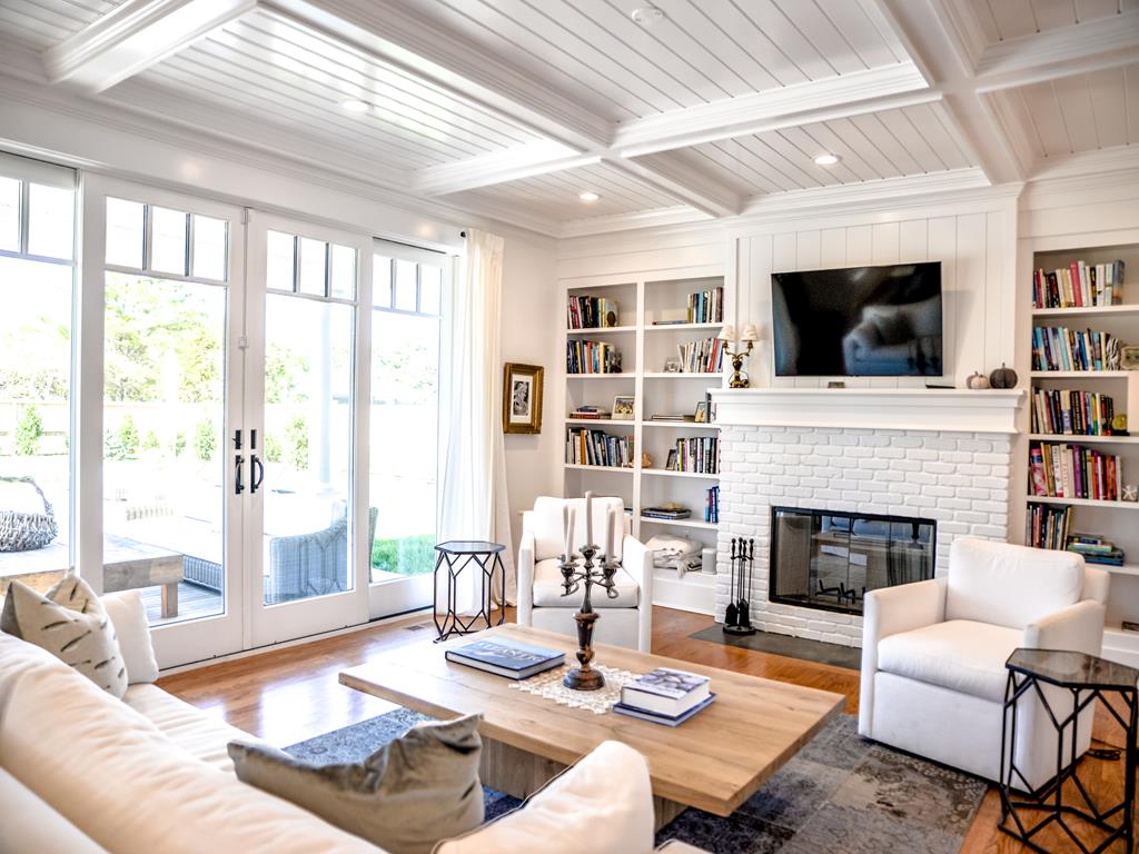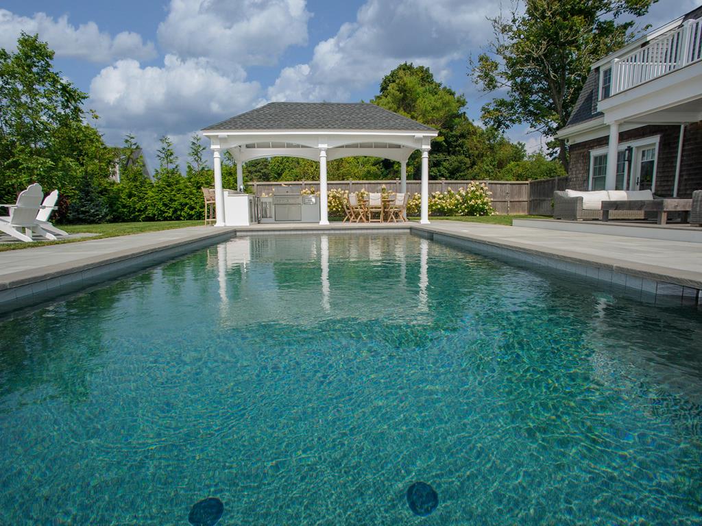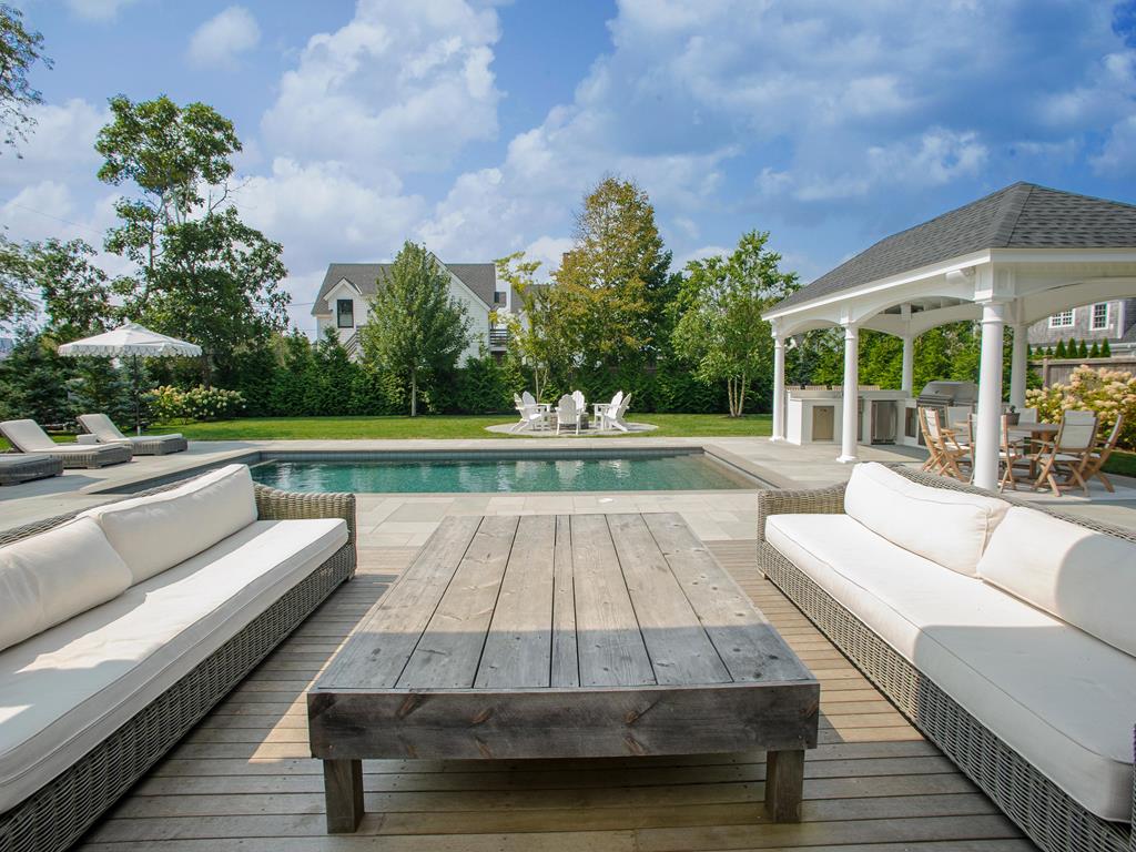 This newly constructed Gambrel style home in the heart of Katama features an open layout for easy entertaining. A large foyer entrance leads to a spacious living room with sofa seating, a media center, and gas fireplace. The gourmet kitchen boasts top of the line stainless steel appliances and counter seating. The dining room is nearby with a large farmhouse table that can accommodate up to 10, perfect for family gatherings!